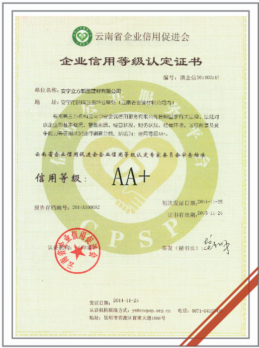 企業(yè)信用等級(jí)證書