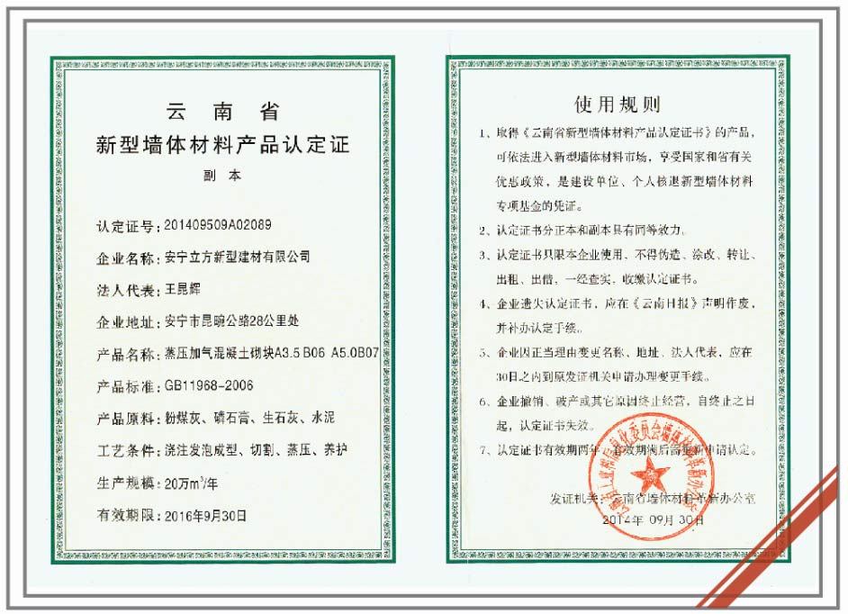 新型墻體材料產(chǎn)品認(rèn)定證