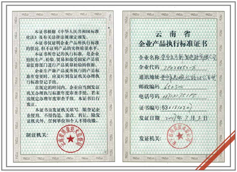 企業(yè)產(chǎn)品執(zhí)行標(biāo)準(zhǔn)書