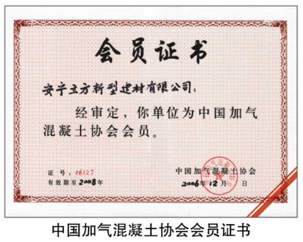 中國加氣混凝土協(xié)會(huì)會(huì)員證